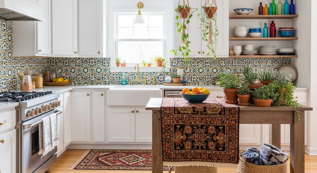 If you crave something exotic and colorful, Moroccan-inspired tiles bring intricate patterns and bold hues. They create a beautiful focal point that complements the simplicity of white cabinets.