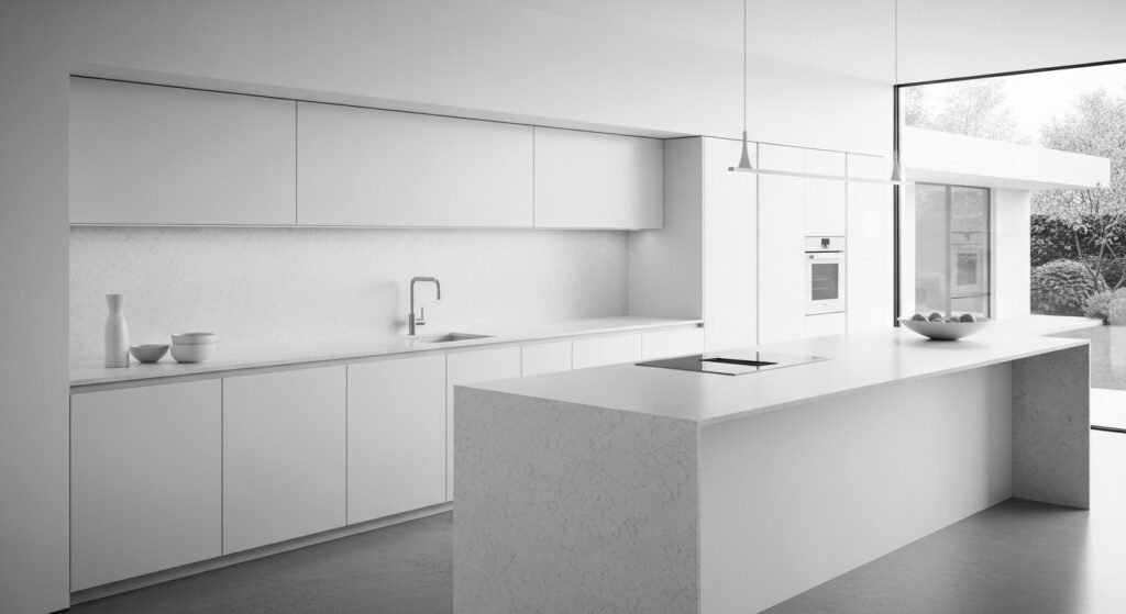 A quartz slab backsplash creates a seamless, modern look that’s both durable and elegant. Matching your backsplash with your countertop offers a luxurious, cohesive aesthetic.
