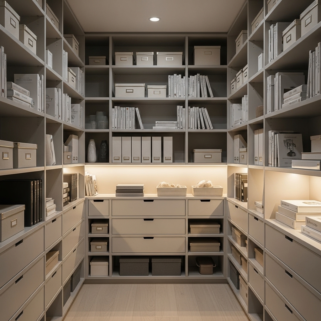 This approach maximizes storage while keeping the design clean. Even faux built-ins using modular units can achieve the same effect, giving the room a polished, high-end appearance.