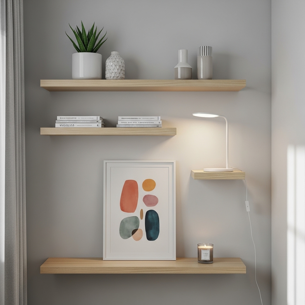 Limit the number of items per shelf to avoid clutter. Coordinated colors and minimal styling work best. Floating shelves add both function and style, making them ideal for small rooms needing a quick refresh.