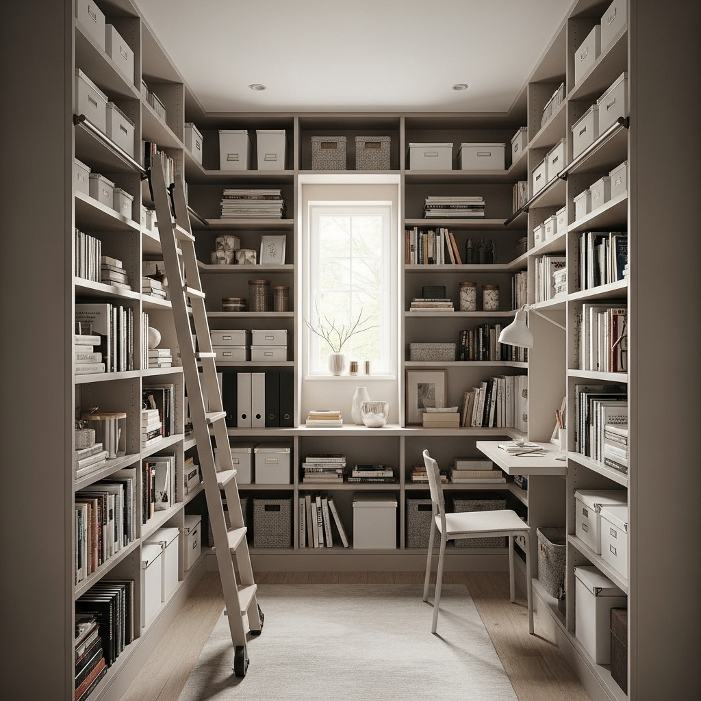 When floor space is limited, vertical storage becomes your best friend. Tall shelves, wall-mounted cabinets, and hanging organizers draw the eye upward and free up valuable ground area. This not only increases storage but also makes the room feel taller.