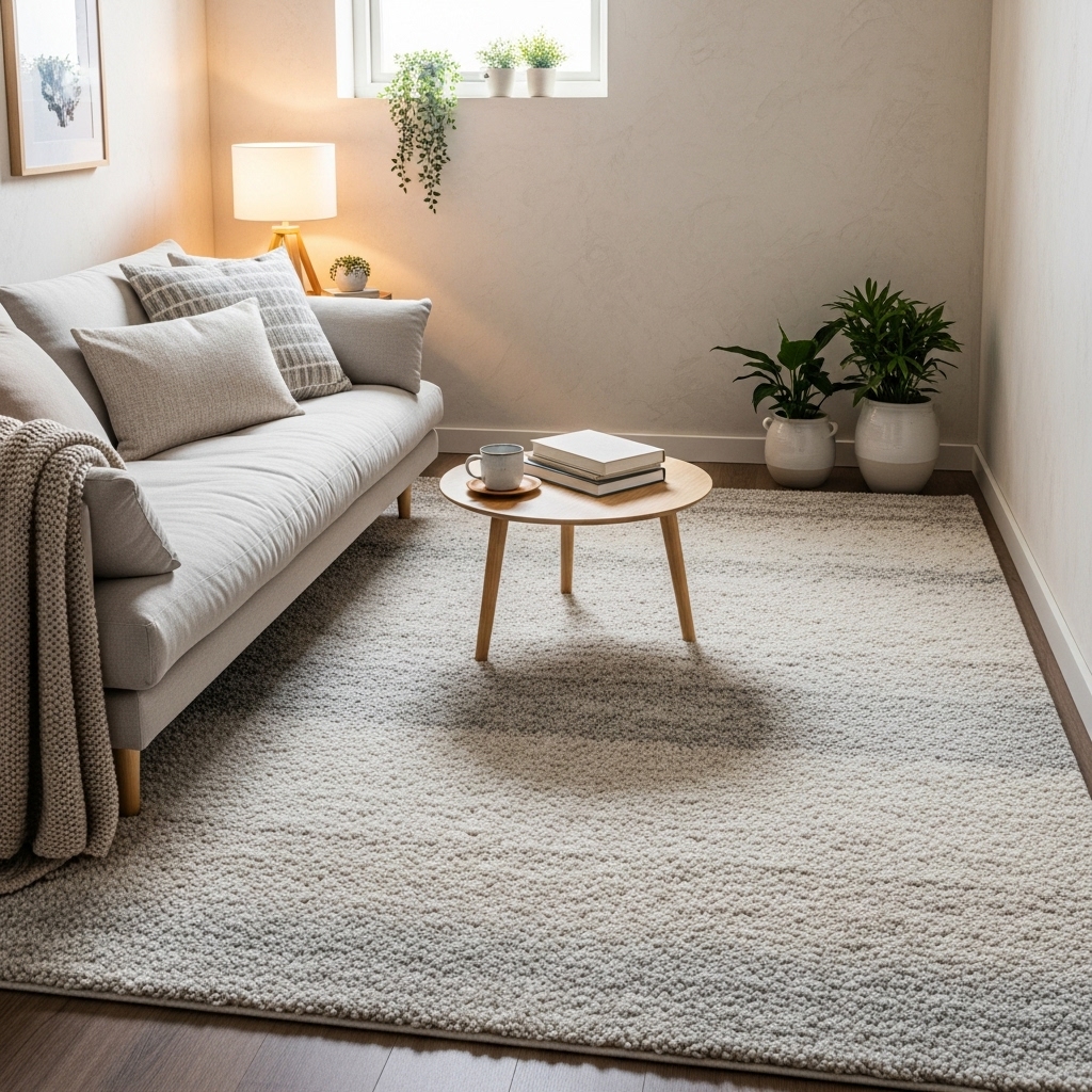 Choose light colors or subtle patterns. Position the rug so furniture legs sit partially on it. This trick visually expands the room and adds warmth, comfort, and a polished finish.