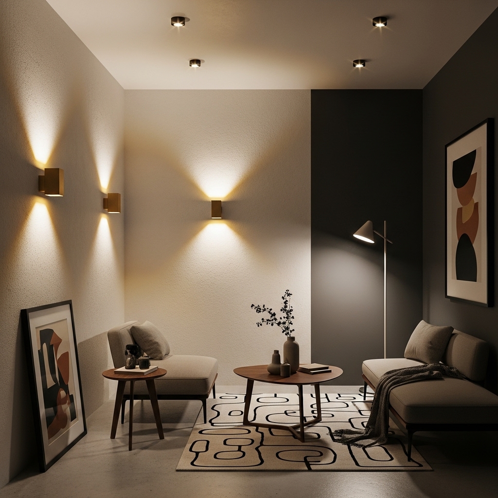 Good lighting can completely transform a small room. Replace heavy floor lamps with wall sconces, pendant lights, or LED strips to save space. Layered lighting—ambient, task, and accent—adds depth and functionality.
