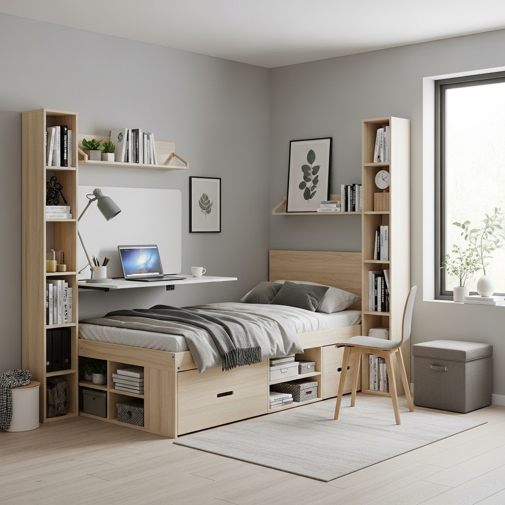 Multi-functional furniture is a game changer for small rooms. Items like storage ottomans, sofa beds, foldable desks, or beds with drawers help you maximize every inch. Instead of crowding the room with multiple pieces, one smart item can serve two or even three purposes effortlessly.