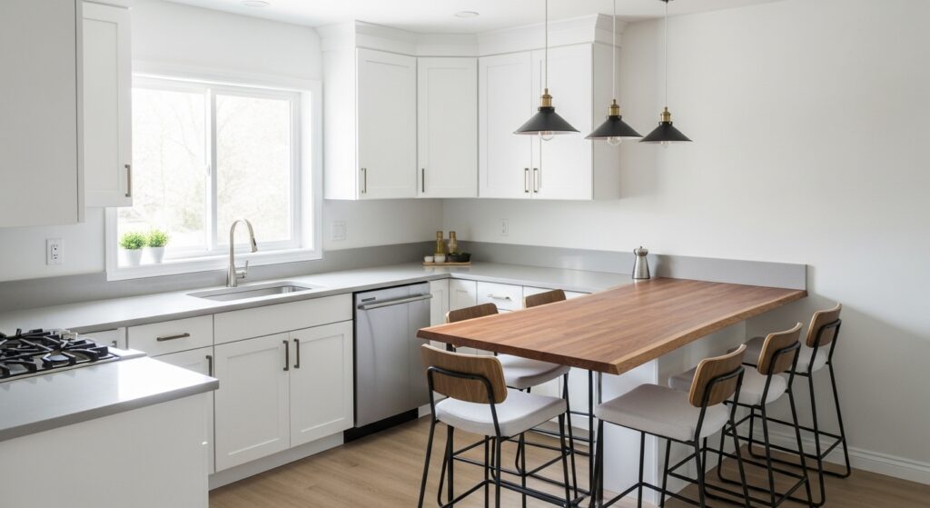 If you’re working with a smaller footprint, a compact L-shape paired with a multi-purpose island is ideal. The island can double as a breakfast bar, prep station, or storage nook, making it incredibly versatile. It brings functionality without overwhelming the room.
