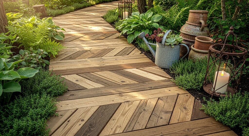 Repurpose old wooden pallets to form rustic planks. It’s eco-friendly, creative, and fits perfectly with a laid-back boho garden.