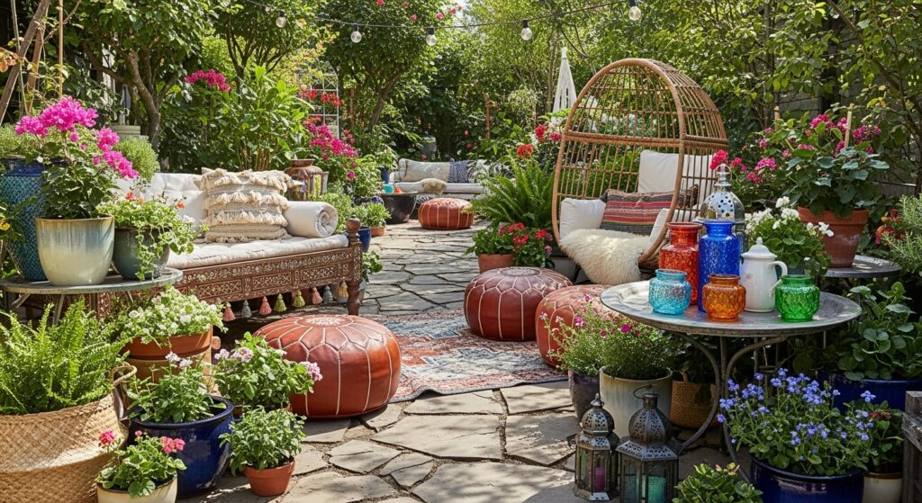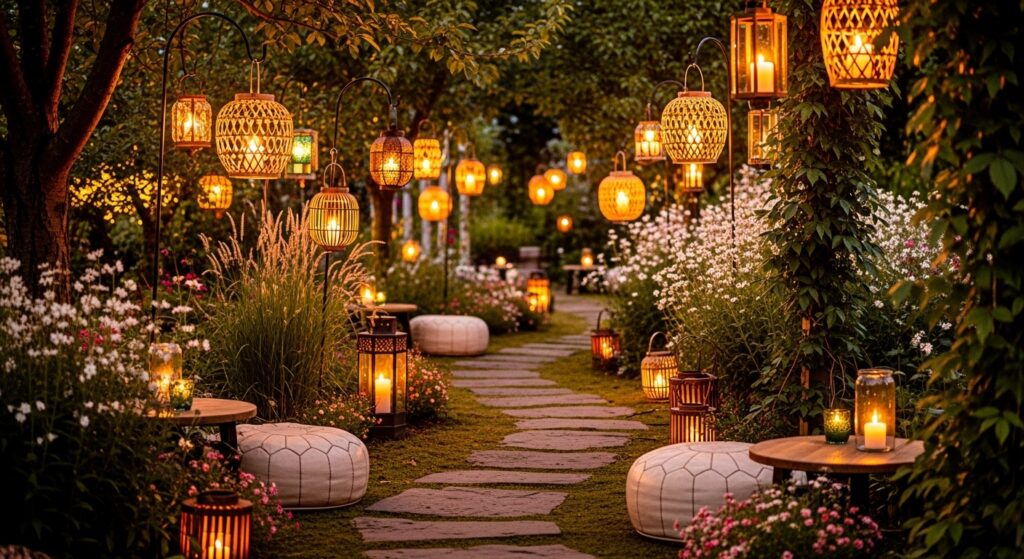 For romantic evenings, line your boho path with candles or lanterns. Combine metal, glass, and bamboo holders for a cozy, eclectic nighttime glow.