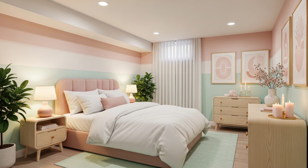 Incorporate pastel shades like blush, mint, or lavender for a cheerful and refreshing look. Combine with white bedding and light furniture to make your basement feel airy and inviting.