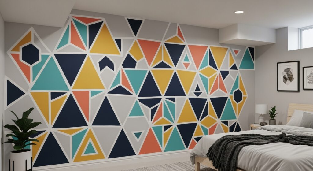 Create a DIY mural or patterned wall using peel-and-stick wallpaper or paint stencils. It’s a simple way to make your basement bedroom stand out.