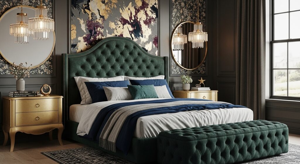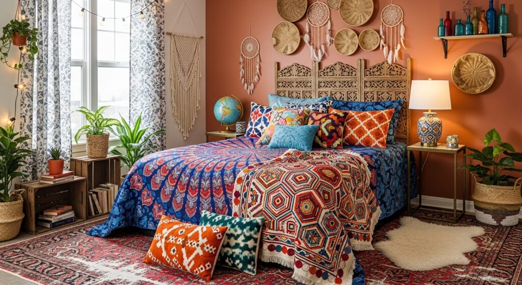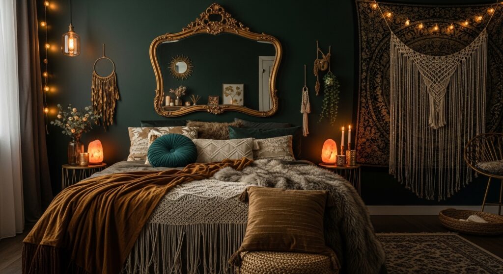 For a touch of elegance, mix velvet textures, gold finishes, and rich jewel tones. It’s boho meets luxury — soft, stunning, and stylish.