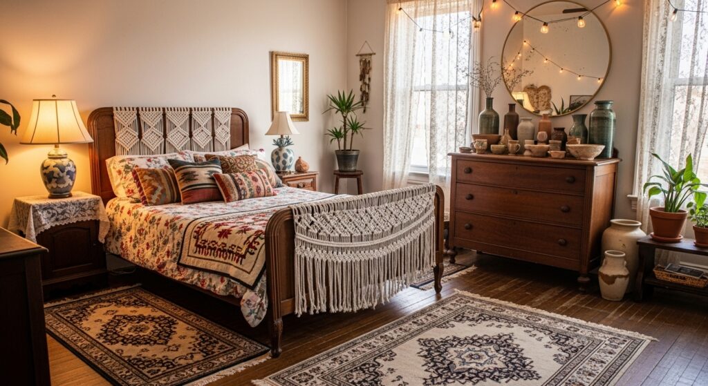 Incorporate vintage furniture with modern boho decor for a timeless twist. Think antique dressers, patterned rugs, and handmade ceramics for that cozy lived-in look.