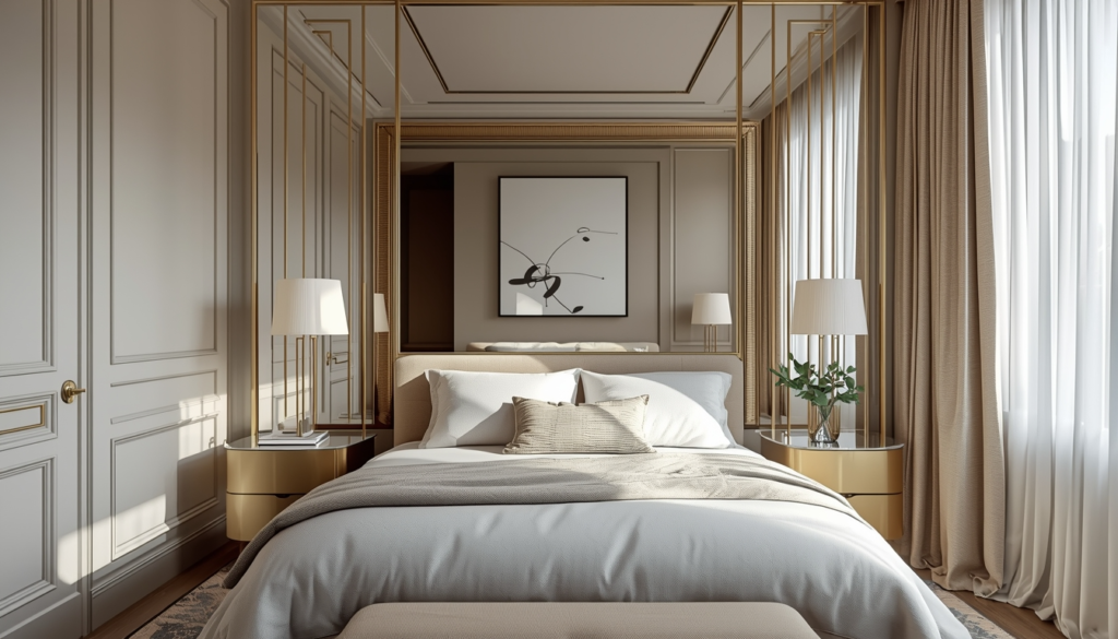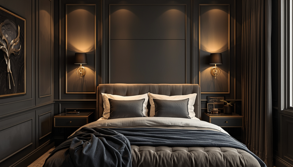 Opt for brass, matte black, or gold wall sconces with soft warm lighting. These details enhance luxury while keeping the room functional, cozy, and visually uncluttered.