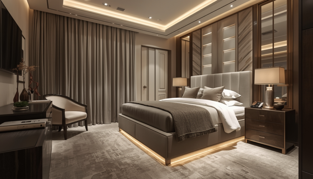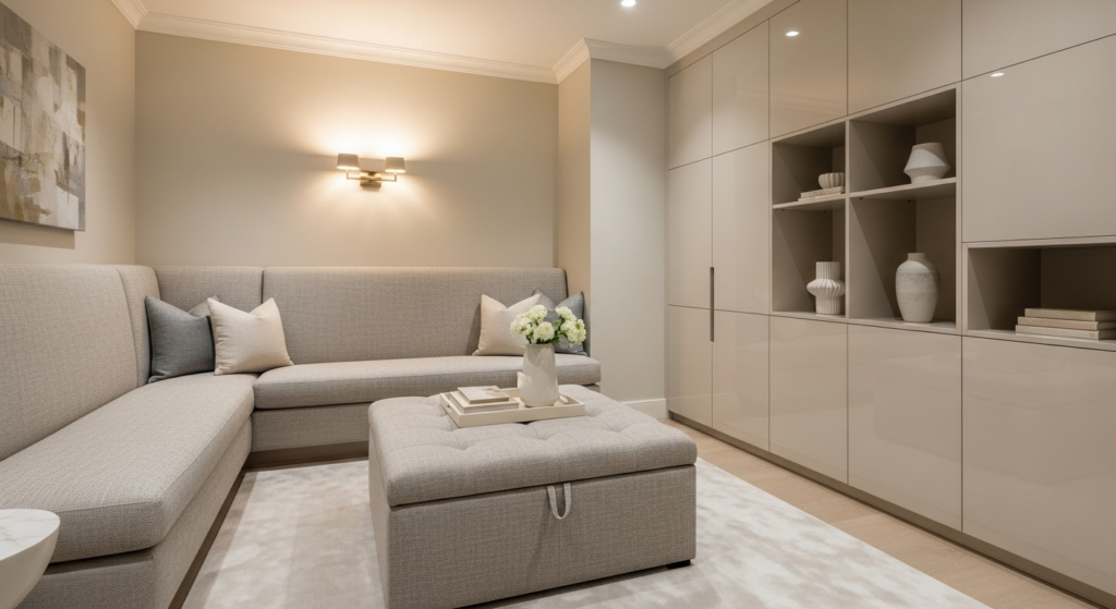 Select custom or slim-profile pieces with elegant finishes to keep the room refined. This strategy balances functionality and luxury while maximizing every inch of space.