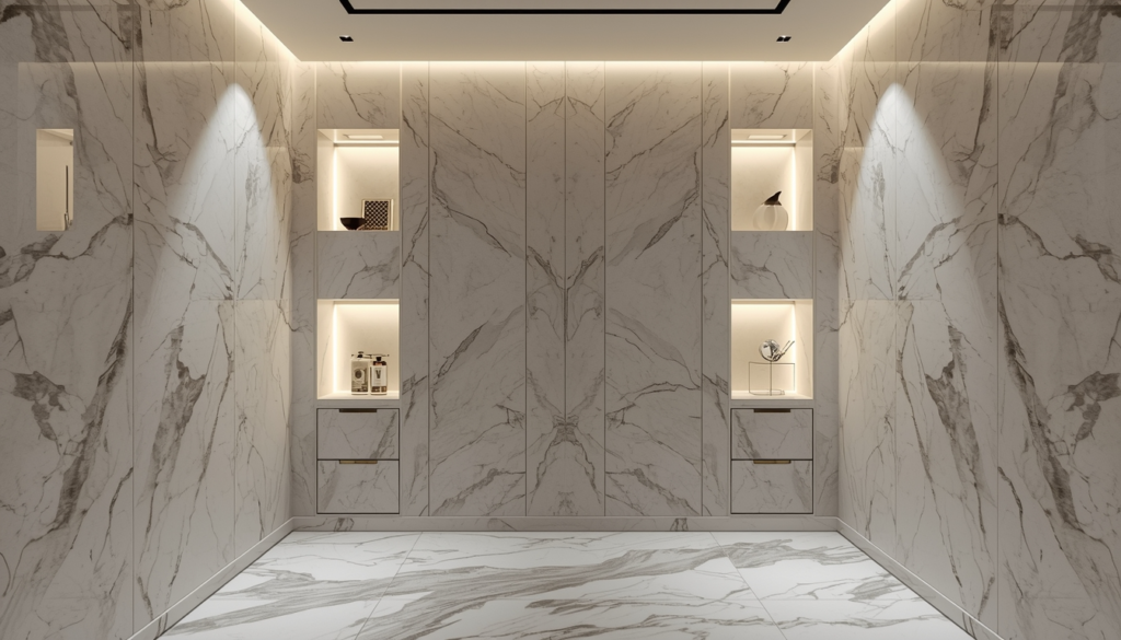 Enhance the luxury appeal with soft LED lighting, marble backing, or neutral tones. These details turn simple storage into a refined design feature that elevates the entire room.