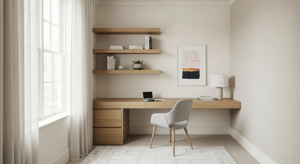 A fold-away designer wall desk is an elegant solution for small rooms that need flexibility. It provides a functional workspace when required and folds away neatly to preserve open floor space. This makes it ideal for bedrooms, studio apartments, or compact work corners.