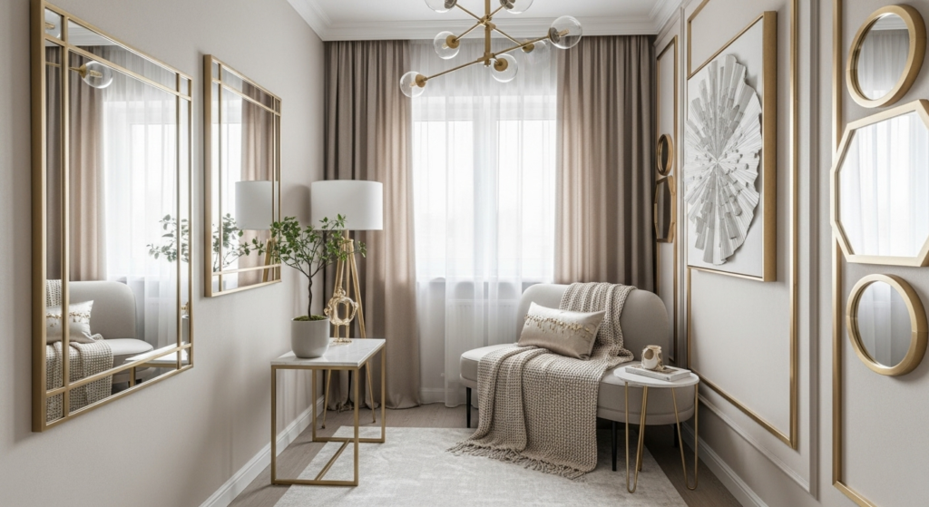 Statement mirrors are one of the easiest ways to visually expand a small room. By reflecting light and surroundings, mirrors create depth and make compact spaces feel brighter and more open. This trick instantly transforms tight rooms into airy, elegant interiors.