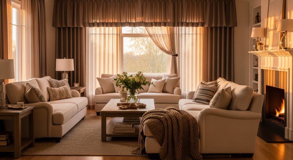 Layering window treatments adds softness, elegance, and warmth. Combining sheer curtains with heavier drapes allows you to control light while creating a cozy ambiance that feels luxurious.