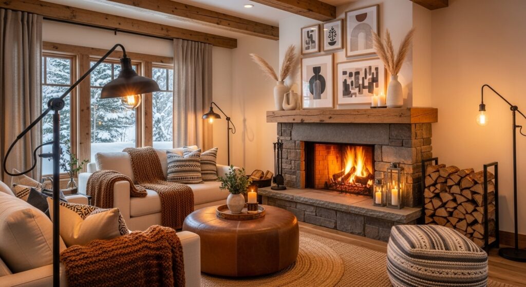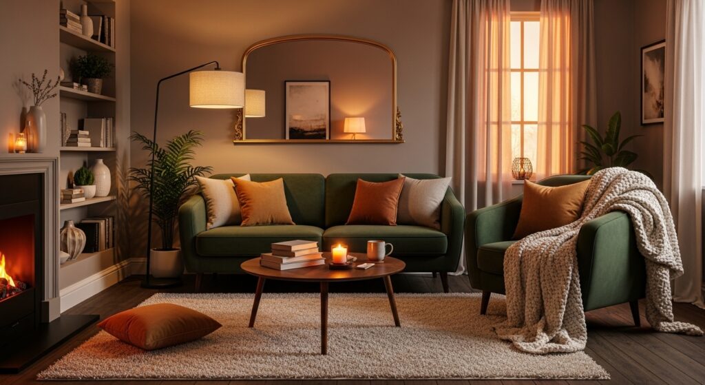 Combine table lamps, floor lamps, and warm LED candles to create layered lighting. This helps the room feel more dynamic and welcoming. A well-lit cozy space encourages relaxation and provides just the right atmosphere for evening unwinding.