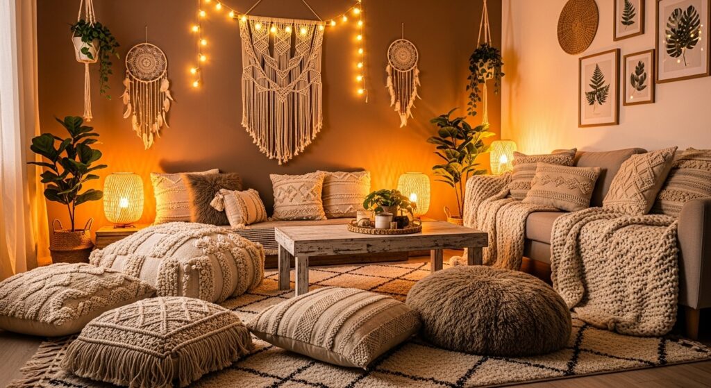 Oversized floor pillows create a relaxed, flexible seating area perfect for movie nights or casual gatherings. They add softness and encourage a laid-back atmosphere while enhancing your room’s style. Choose pillows in rich fabrics like velvet or cotton-linen blends for durability and comfort.