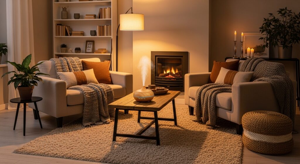 Diffusers also serve as stylish decorative pieces. Choose designs that match your aesthetic, and switch scents seasonally to keep the room feeling fresh yet consistently homey.