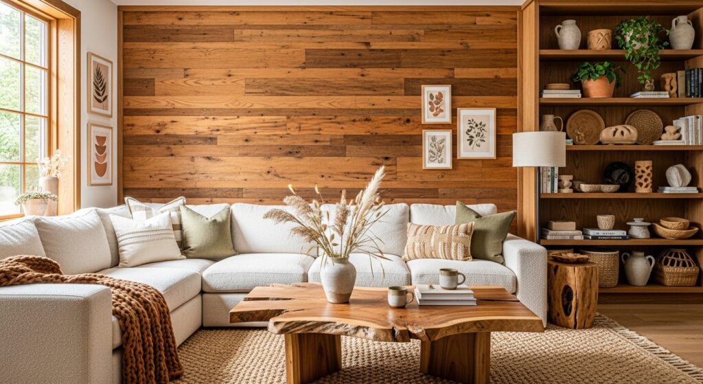 Combining light and medium wood tones helps create dimension without overwhelming your palette. Wood also softens spaces dominated by fabric or metal, making everything feel more balanced and naturally welcoming.