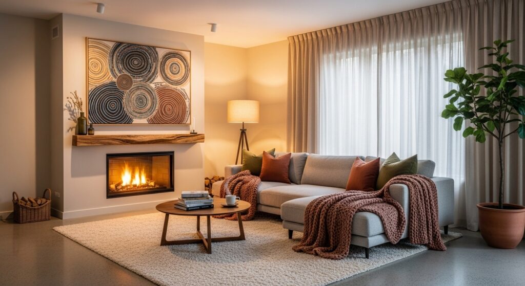 A soft area rug creates warmth and comfort underfoot, completing your cozy living room design. Choosing plush materials like wool or faux fur enhances relaxation and helps define the seating area. Neutral or warm tones maintain harmony with existing decor.