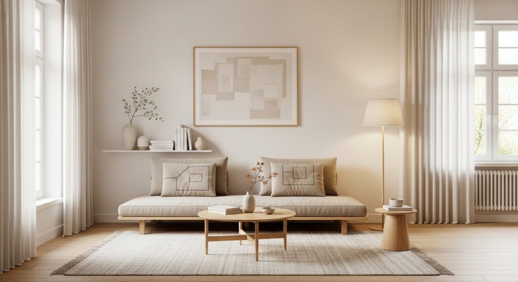 A soft neutral palette creates an inviting, peaceful atmosphere ideal for a cozy living room. Shades like beige, cream, taupe, and warm gray blend effortlessly to form a soothing backdrop. These tones enhance natural light and make the room feel open, balanced, and warm without overwhelming the senses.