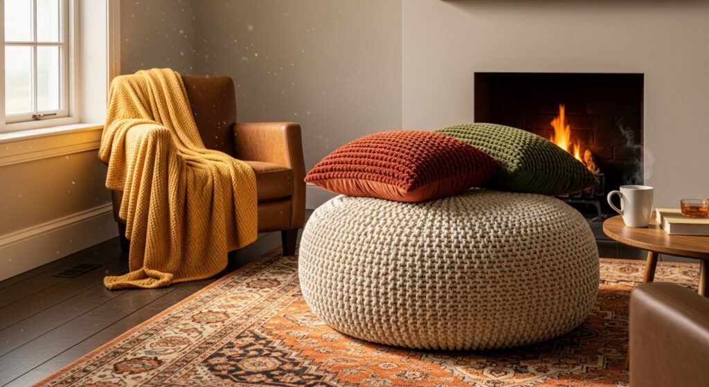 Choosing neutral or warm colors helps them blend effortlessly with your décor. Ottomans can also act as subtle statement pieces when paired with trays, adding both beauty and practicality to your cozy setup.