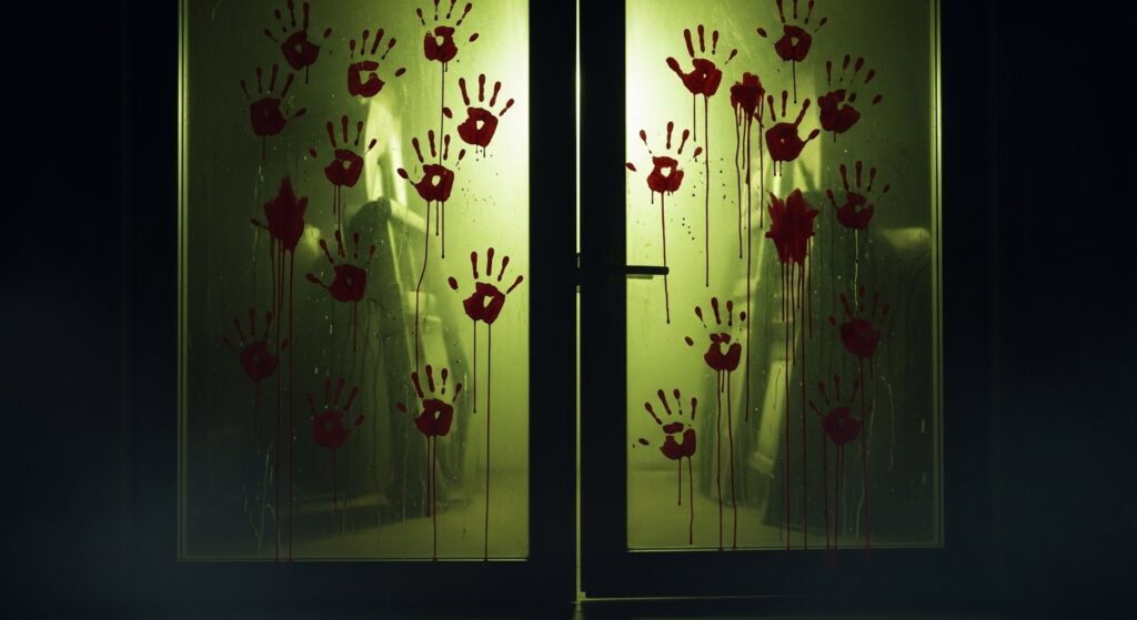 Use removable red paint or decals to make bloody handprints on glass windows and doors. It’s a simple yet shockingly effective scare tactic!