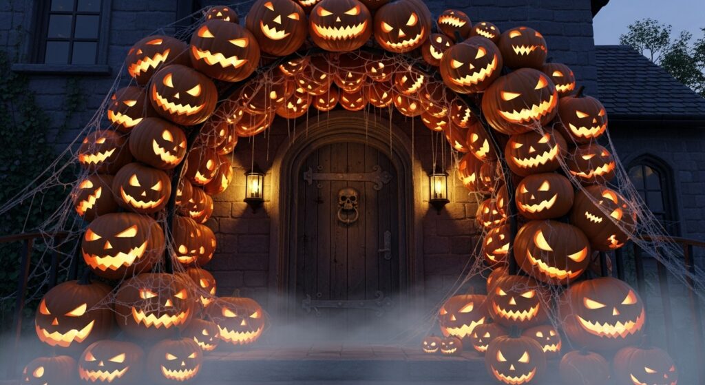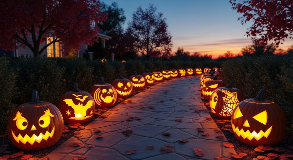Line your walkway with carved pumpkins, each glowing with different spooky faces. The flickering candlelight creates a haunting path that welcomes guests and spirits alike.