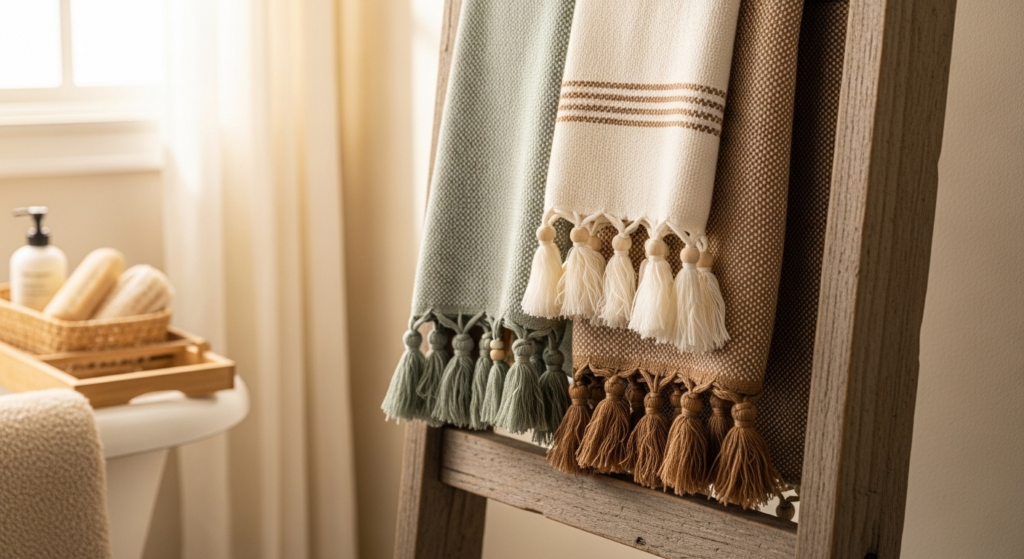 Tassel-trimmed towels combine playful detail with elegance, instantly elevating your bathroom décor. Soft, absorbent, and budget-friendly, they offer daily comfort while adding a boutique feel. The charming tassels make each towel feel luxurious, creating a stylish and inviting space without the need for expensive accessories.