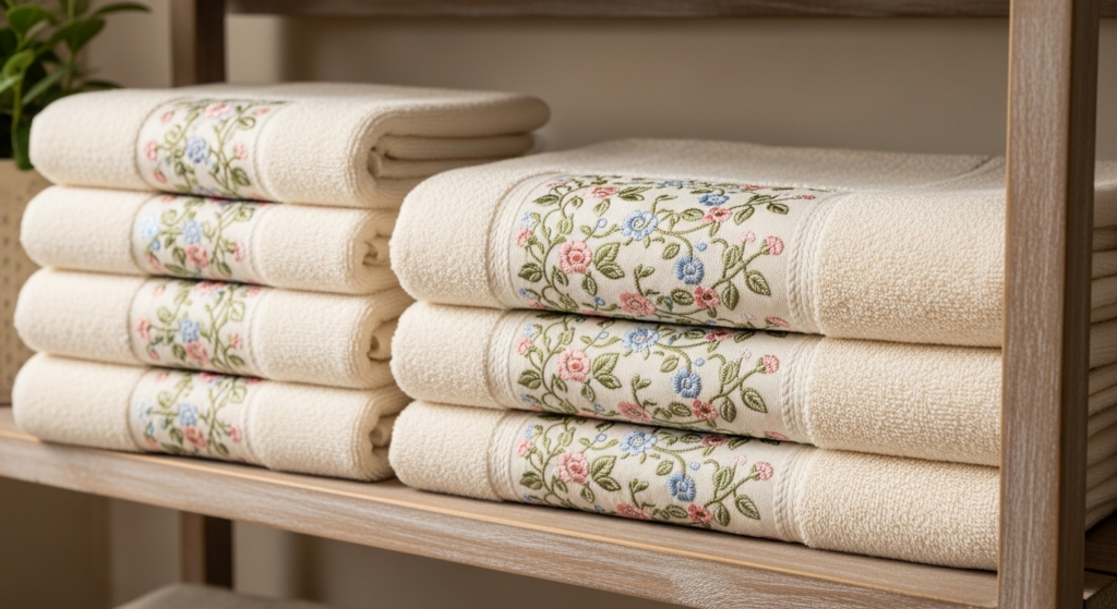 Patterned edge towels combine elegance with subtle design details. Soft, absorbent, and budget-friendly, they feel luxurious every day. The decorative edging transforms simple towels into stylish accents, adding a touch of sophistication to your bathroom while keeping your space chic and inviting without overspending.